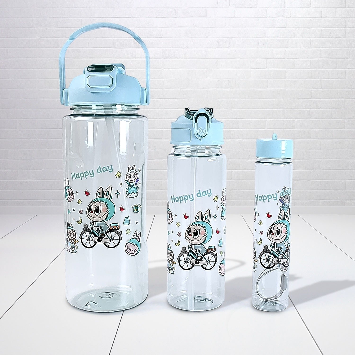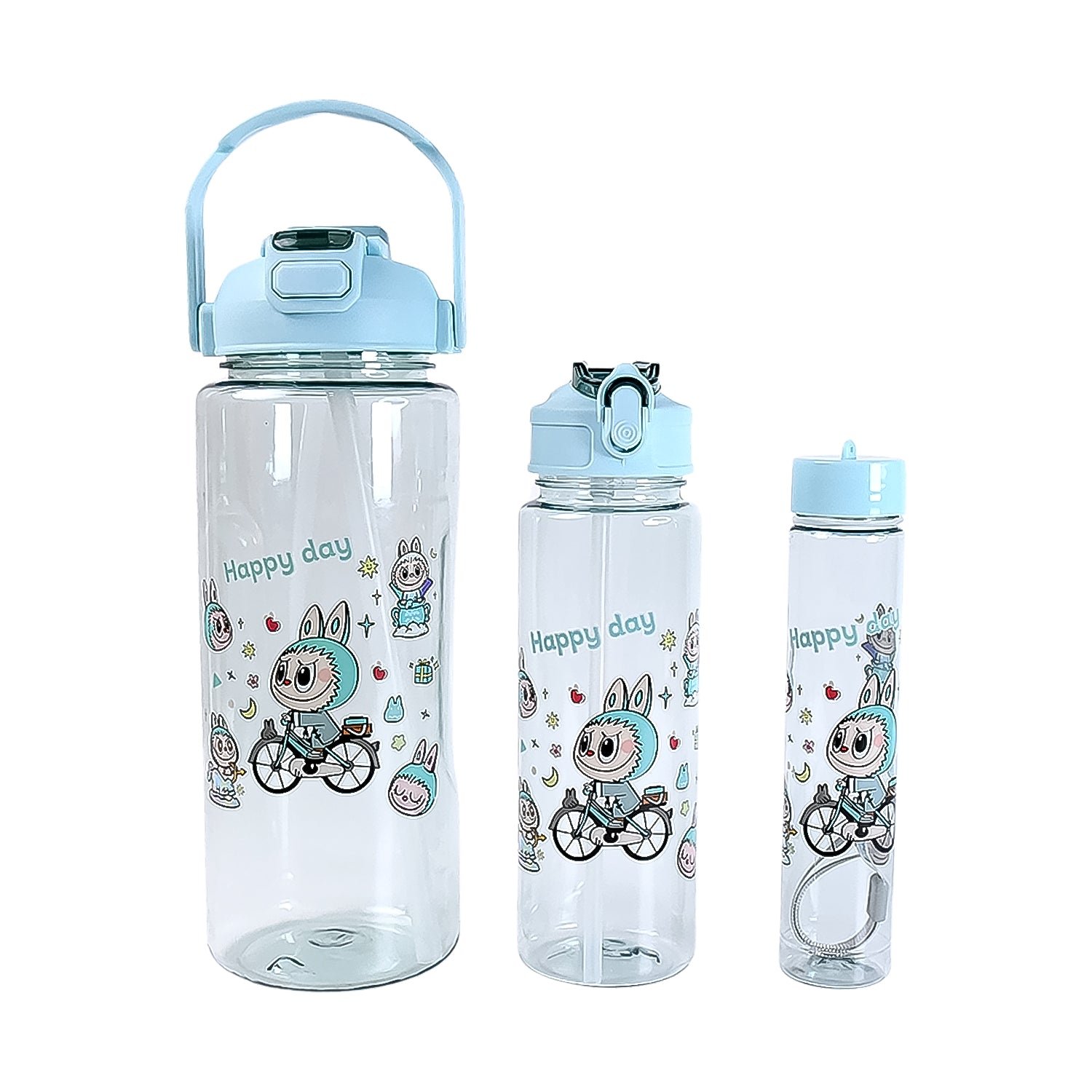 3 in 1 Plastic water drinking bottle with handle straw (3 Pcs Set)