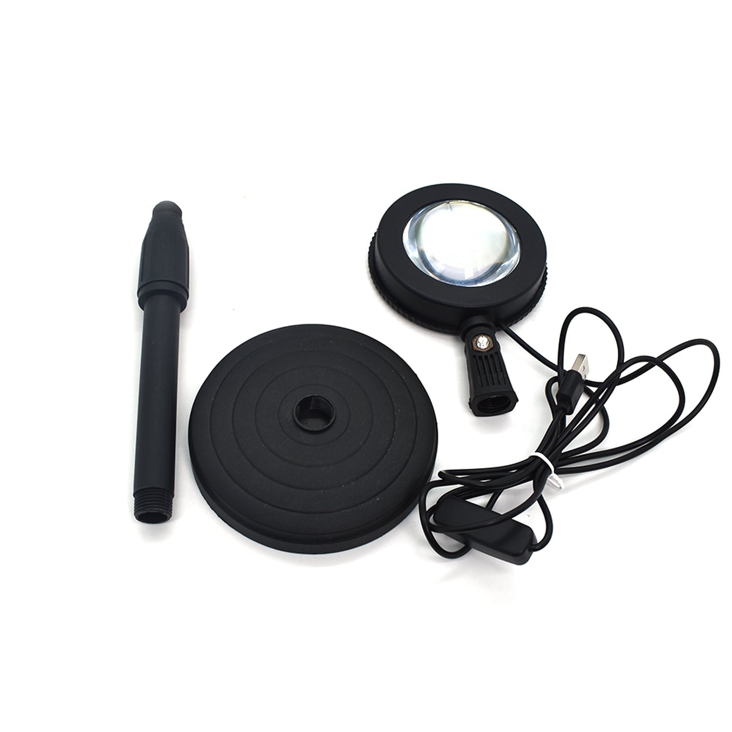 Material: Aluminum Alloy Power: 5W Input: 5V Color: Sunset/Sunlight/Sunset-Red/Rainbow USB Cable: 200 cm/78.7in Lamp Bead Type: LED chip Voltage: 110-220 (V) Package Include: 1 x Lamp 4 x Color Films 1 x Base Plate 1 x 360° Bracket 1 x Telescopic Bracket.