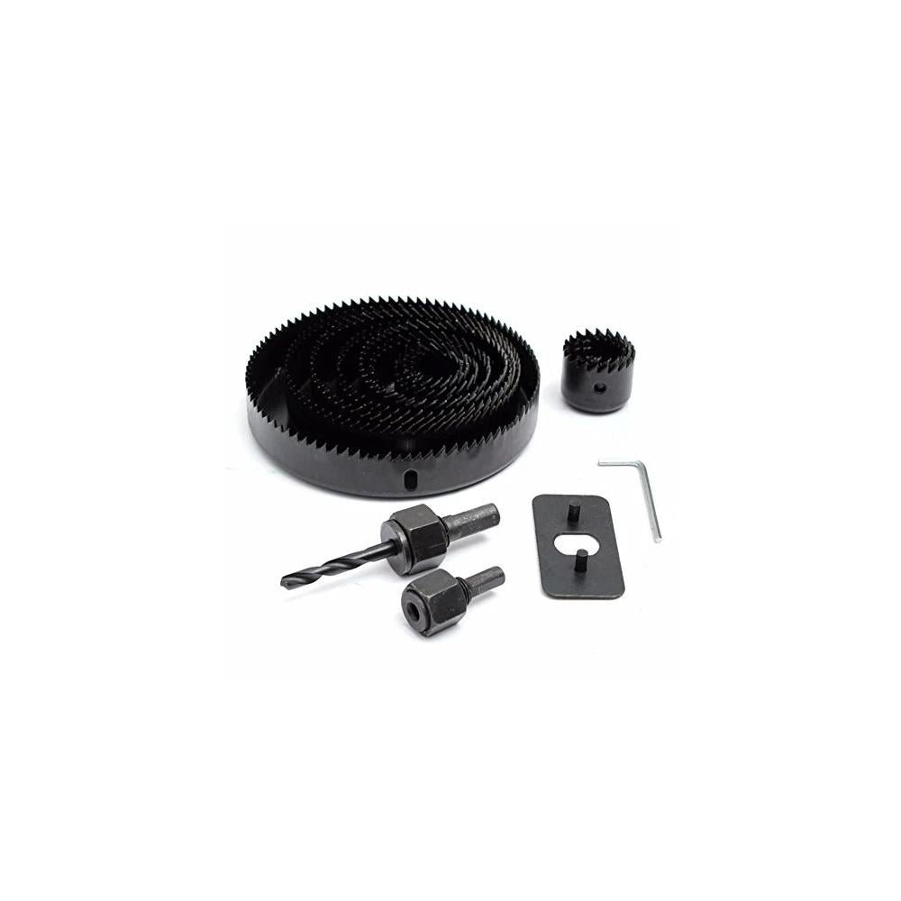- Optimized tooth design penetrates object with ease, cut perfect circles with these tools. Multiscale: 3/4″(19mm),7/8″(22mm),1″(25mm),1-1/4″(32mm),1-1/2″(38mm),1-3/4″(44mm),2″(54mm),2-1/2″(64mm),3″(76mm),3-1/2″(89mm),4″(102mm),5″(127mm)… 12x hole saw sets, 2x mandrels, 1x hex wrench, 1x cushion plate within this plastic case