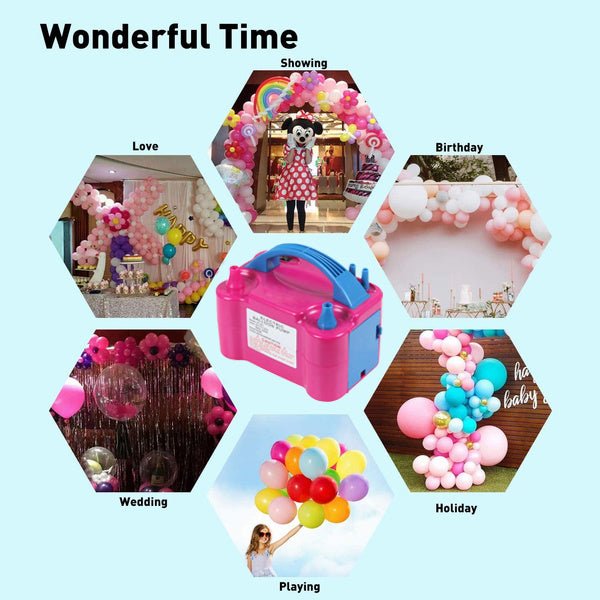 This quality electric balloon pump will inflate hundreds of decorative latex balloons in super-fast time, and commonly used in some activities/ festival/ party/celebration/ decoration.