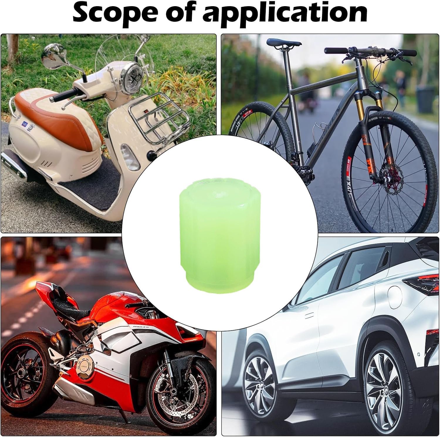 Versatile Application: Designed with universality in mind, these valve caps accommodate most vehicle types, including cars, buses, SUVs, trucks, motorcycles, and bicycles. They contribute to maintaining proper tire inflation across a wide range of vehicles.